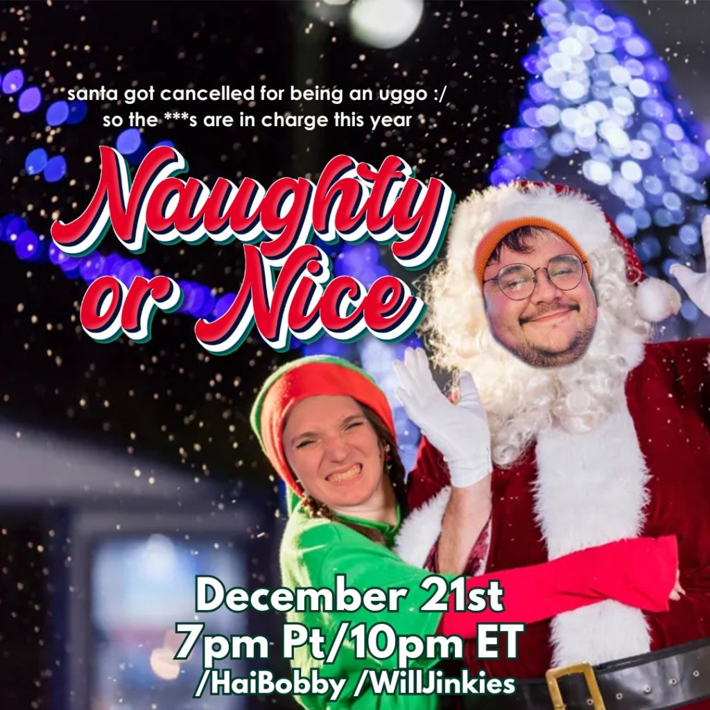 Twitch’s “official” Naughty or Nice holiday list for Twitch’s Pride Guild, myself and HaiBobby spent the night on the front page of the website ranking members of the guild on an arbitrary scale of naughtyness to niceness. The stream averaged 1,800 viewers, and is unfortunately lost media due to Twitch’s new video storage policy 😦 Clips can be provided upon request!