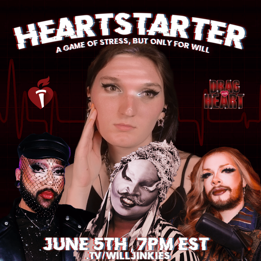 Heartstarter was developed in collaboration with the American Heart Association to promote CPR Week & queer heart health during Pride Month! The event, designed specifically to stress me and out and make my heart rate rise featured (left to right) IdcIgnacio, Cyreelism, & HarleenDoesStuff playing through rounds of improv comedy games.